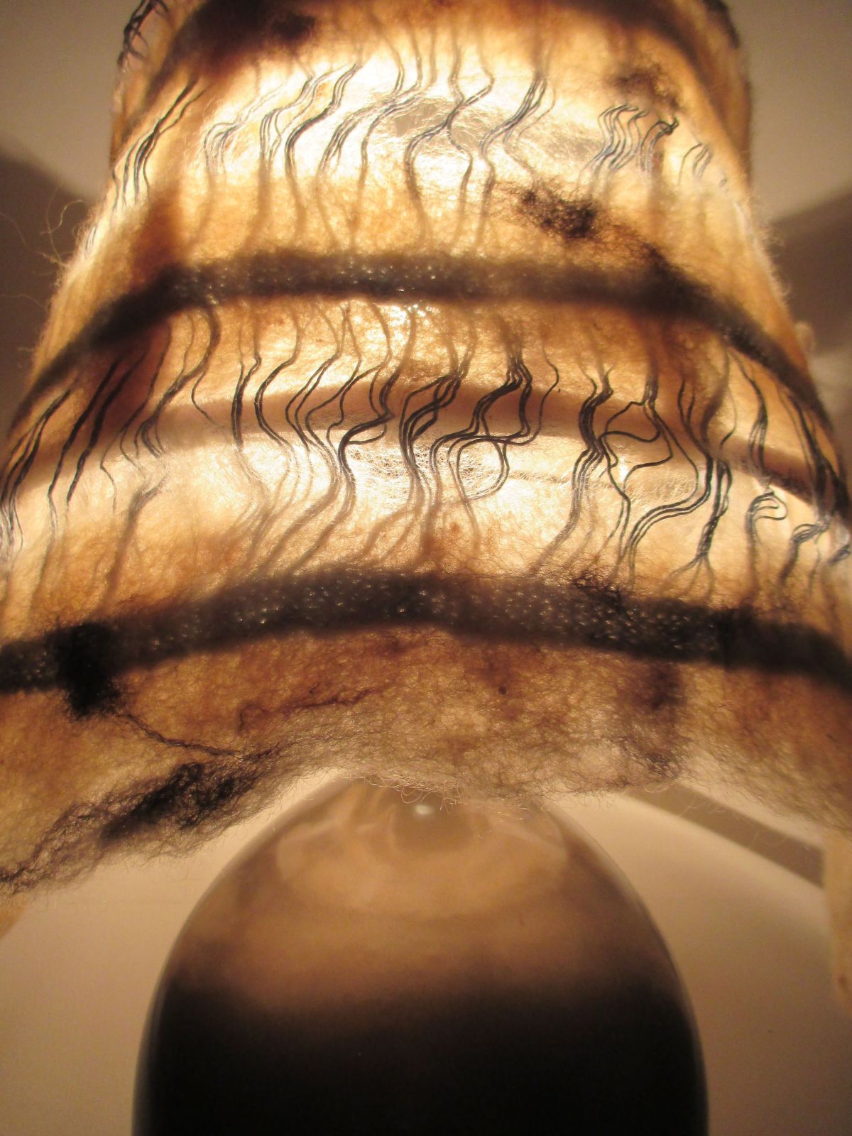 9 - Close up of wool felted through a piece of knit and held against artificial light