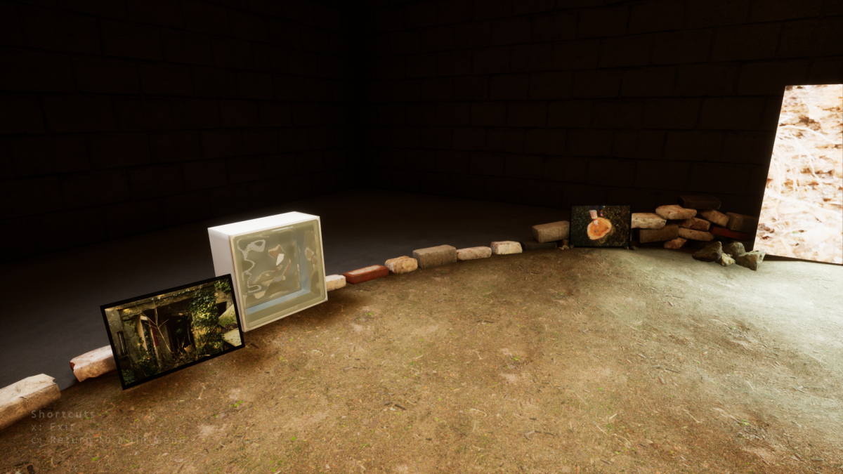 Concerned with concepts of home and ownership, ‘Being Home’ is intended to be displayed as an immersive installation in which to spend time, slow down and savour small moments. It explores how to cultivate a sense of home in a world where this can often prove difficult. Using a recently felled forest as its backdrop and employing punctuated cuts to black, the video piece seeks to subtly question the spaces we feel at home in and our sense of control over them, and to highlight the beauty in the imperfect and seemingly insignificant.