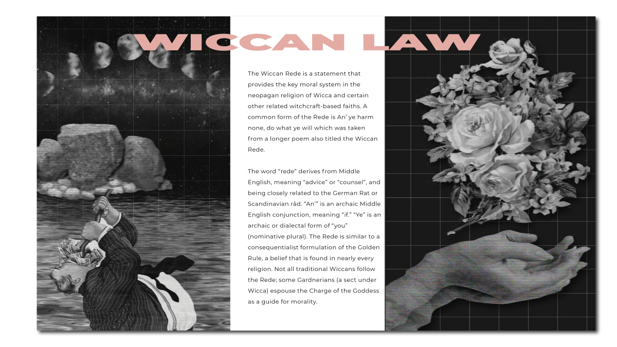 Using technology I have created educational and personal experiences for pagans and non-pagans to celebrate three aspects of paganism. My first outcome is 10 Augmented reality posters using an app called artivive. It is based on The Wiccan Rede which is a set of rules followed by pagan witches known as Wicca. My second outcome is a game using a light dependent resistor to celebrate The Summer Solstice. My third outcome is a virtual reality pagan mask.
